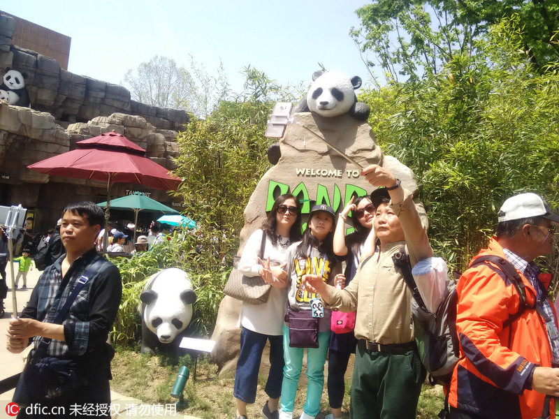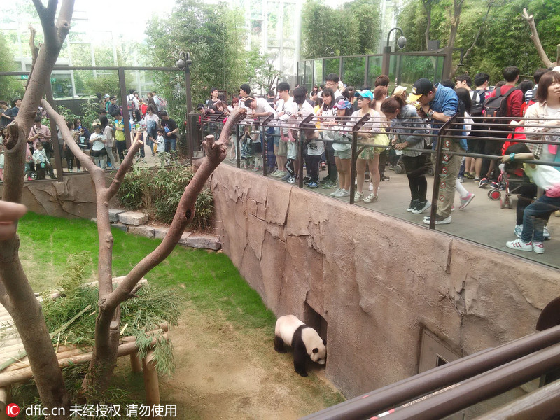 2016年5月5日,韩国儿童节。当天,在韩国爱宝乐园熊猫馆,来自中国的熊猫“爱宝”、“乐宝”受到韩国儿童和家长的喜爱,争相与熊猫拍照留念。
