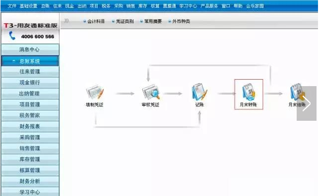 一、进入总账模块,打开月末转账