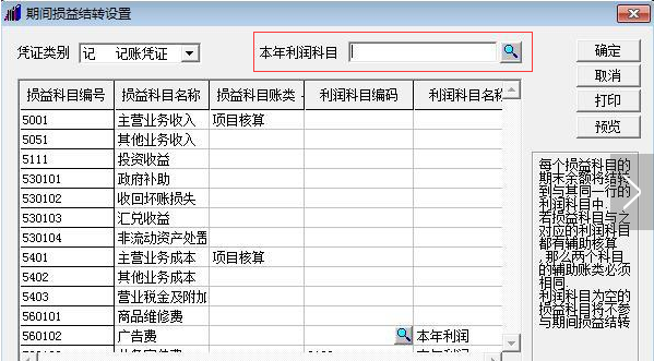 三、在期间损益结转设置中,点击本年科目后面的放大镜。