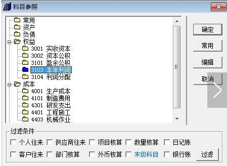 四、在科目参照中,找到权益类中的本年利润科目,选中后点击确定。