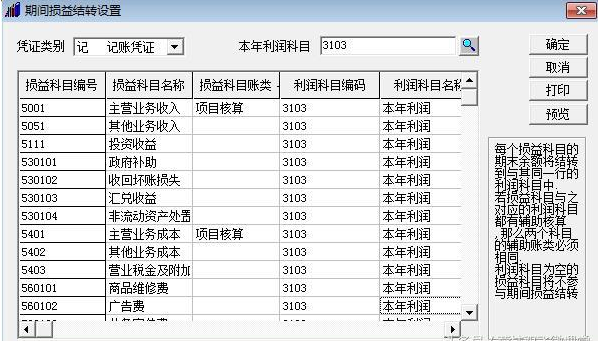 五、这时在期间损益结转的界面里就可以看到,本年利润科目后带有会计编码了,然后点击确定。