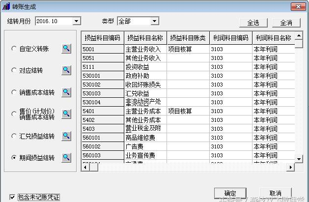 六、如要对未结转的凭证进行期间损益结转,可以在转账生成中勾选“包含未记账凭证”。