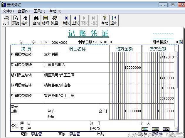 八、选择好之后,点击确定,就会自动生成一张期间损益结转凭证了。