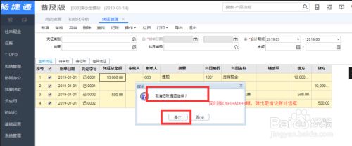 同时按键盘上的“Ctrl+Alt+H”组合键,弹出”取消记账,是否继续”的提示信息,点击“是”。