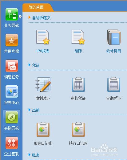 继续分享,反记账的操作!在U8界面选择“实施导航”!