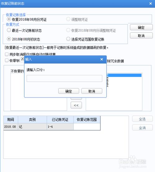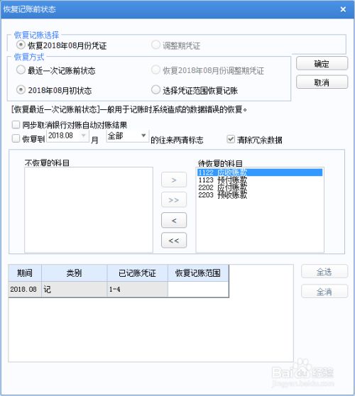 在“恢复记账前状态”窗口中,“恢复方式”下选择“恢复2018年08月初状态”后!点击“确定”!
