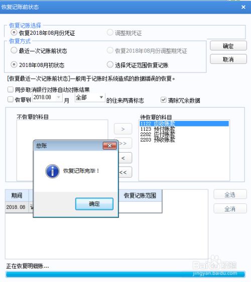 弹出“恢复记账完毕”!点击“确定”!这样可以对2018年8月份凭证取消审核后,进行修改!