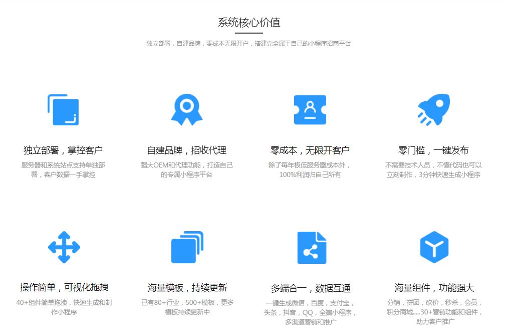 独立部署,掌控客户,自建品牌,招收代理,无限开客户,一键发布